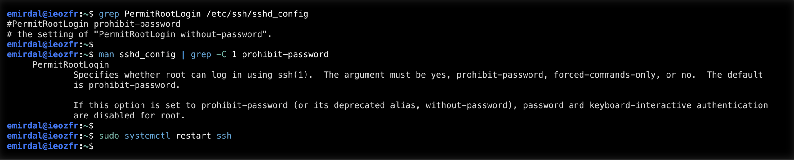 İncelediğimizde /etc/ssh/sshd_config dosyasındaki PermitRootLogin satırını göreceğiz. Bu satırı kullanım senaryomuza uygun olacak şekilde düzenlemek isteyeceğiz: